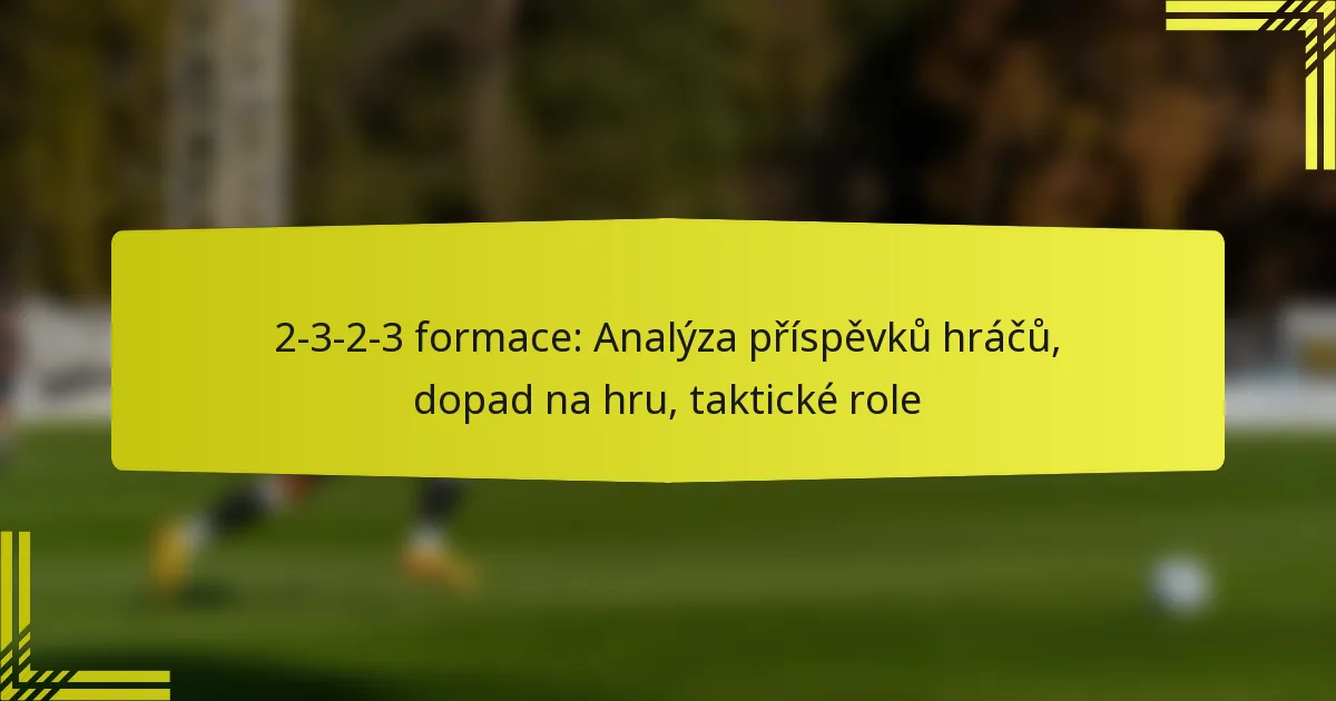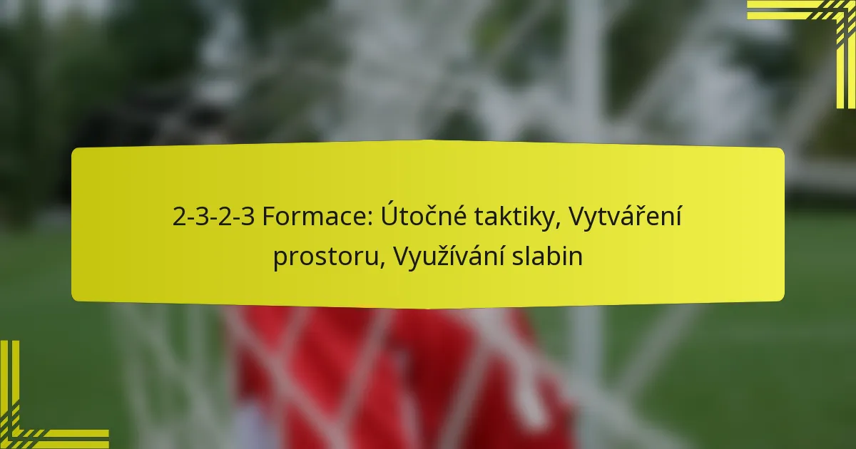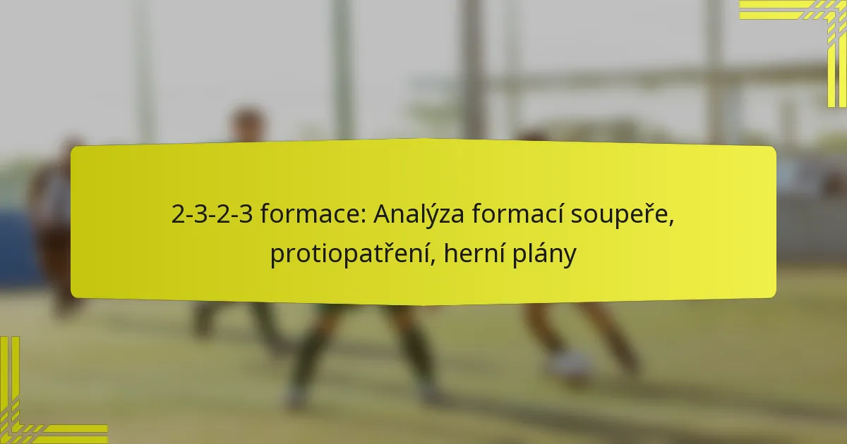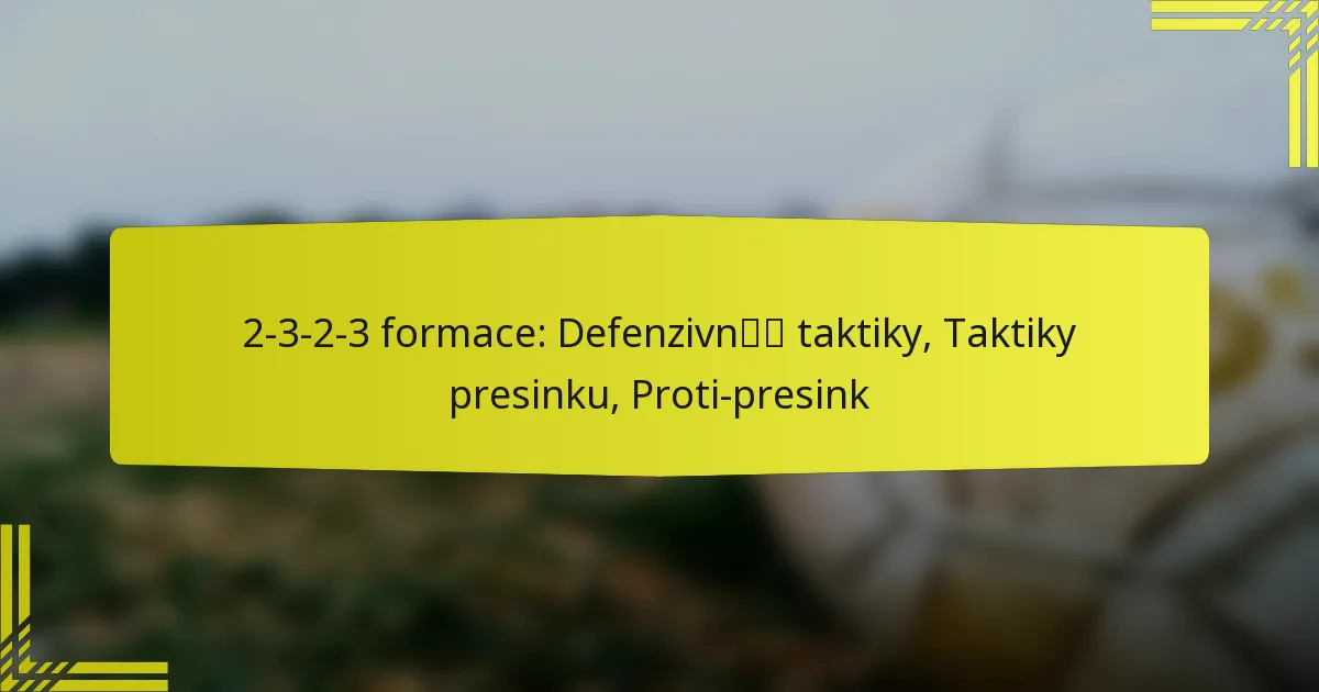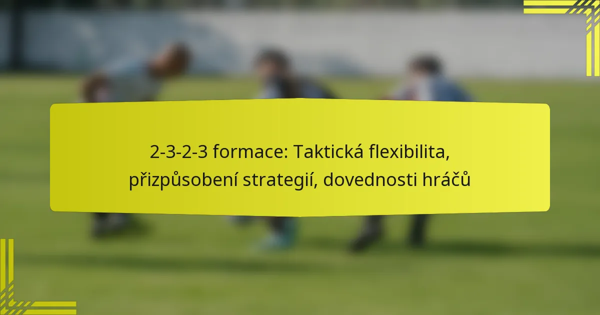 Fotbalová formace 2-3-2-3 je taktická sestava, která zahrnuje dva obránce, tři záložníky, dva útočníky a brankáře. Tato formace zdůrazňuje jak defenzivní stabilitu, tak útočnou flexibilitu, což umožňuje týmům přizpůsobit se různým herním situacím.