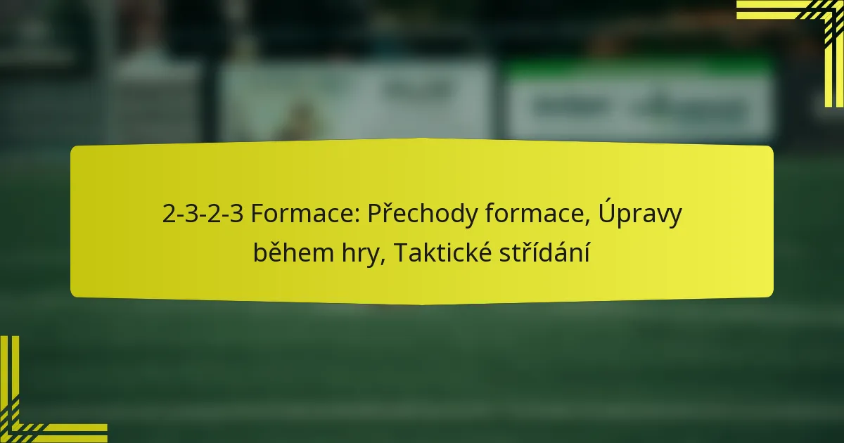Úpravy během hry jsou klíčové pro maximalizaci efektivity formace 2-3-2-3. Trenéři by měli připravit hráče, aby přizpůsobili své role na základě taktik soupeře, například přechodem na defenzivnější uspořádání při čelním silnému útoku. Strategické využívání střídání může také osvěžit úroveň energie hráčů a změnit formaci, aby se využily slabiny v soupeřově týmu.