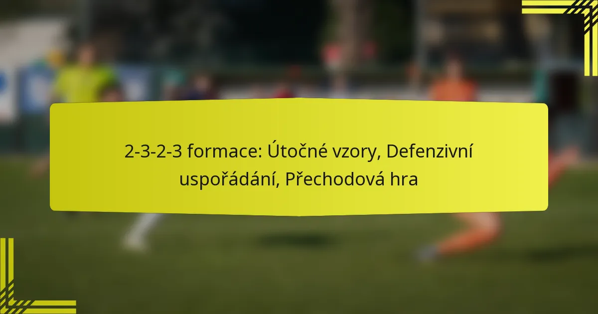 Formace 2-3-2-3 je taktická struktura ve fotbale, která zdůrazňuje jak obrannou pevnost, tak útočnou flexibilitu. Díky dvěma obráncům, třem záložníkům a třem útočníkům umožňuje tato formace týmům přizpůsobit své strategie podle průběhu hry. Vyžaduje, aby hráči měli specifické dovednosti, což zajišťuje efektivní hru prostřednictvím dynamického postavení a situational awareness. Key sections in the article: Toggle …
